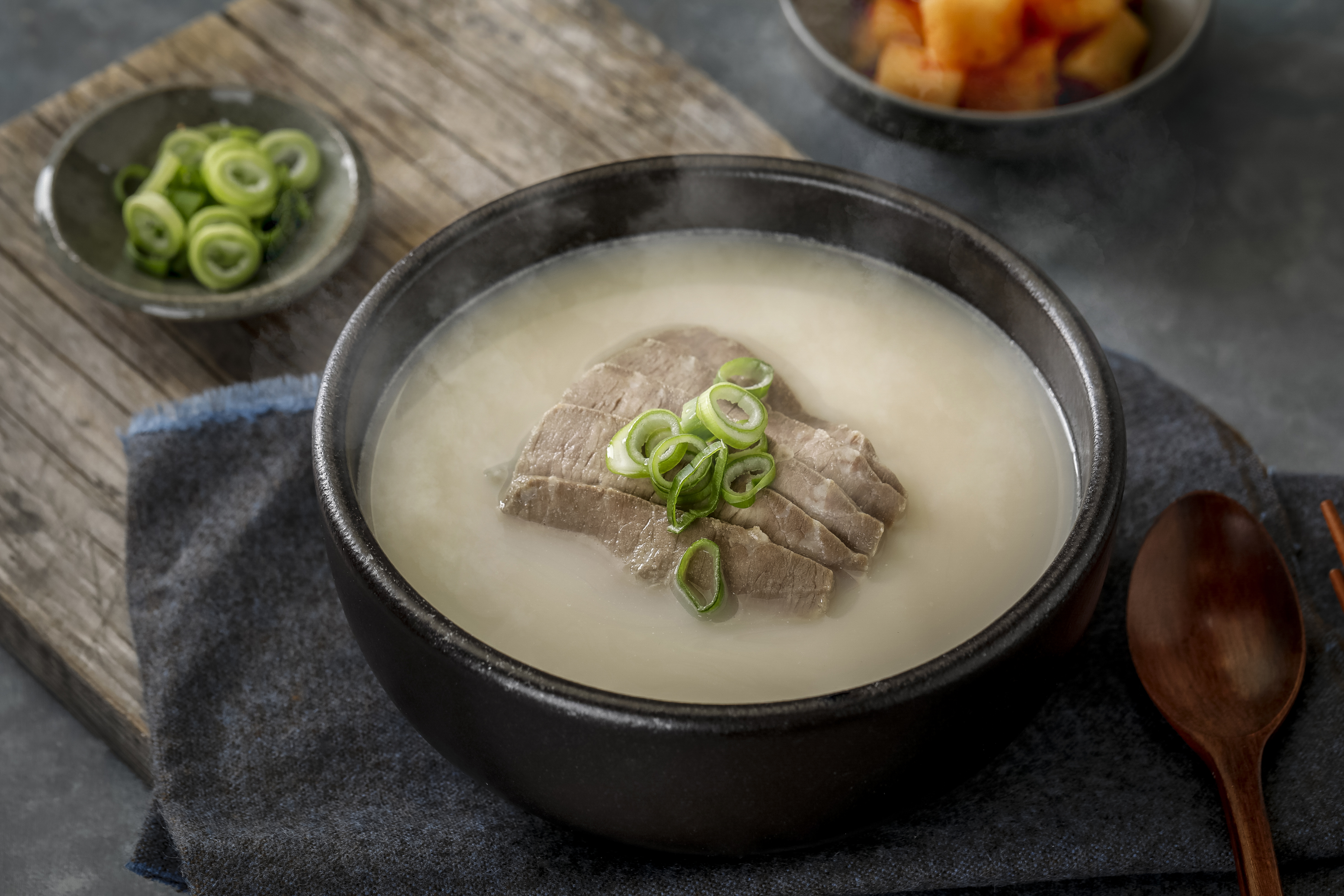 - 뽀얀 사골 국물에 양지·사태 고기, 우설(쇠혀) 등을 넣어 푹 고아 낸 한국 전통 탕.